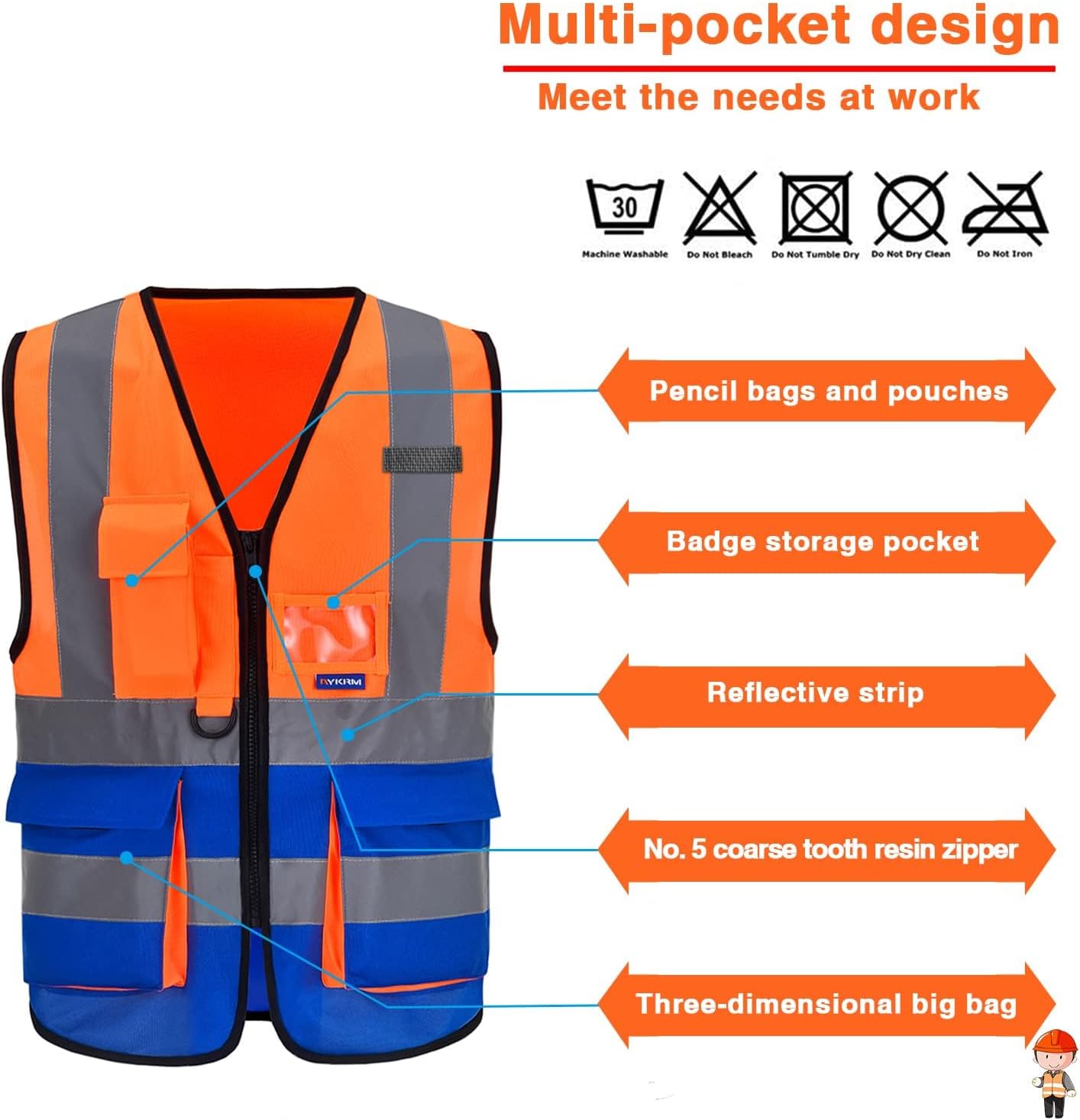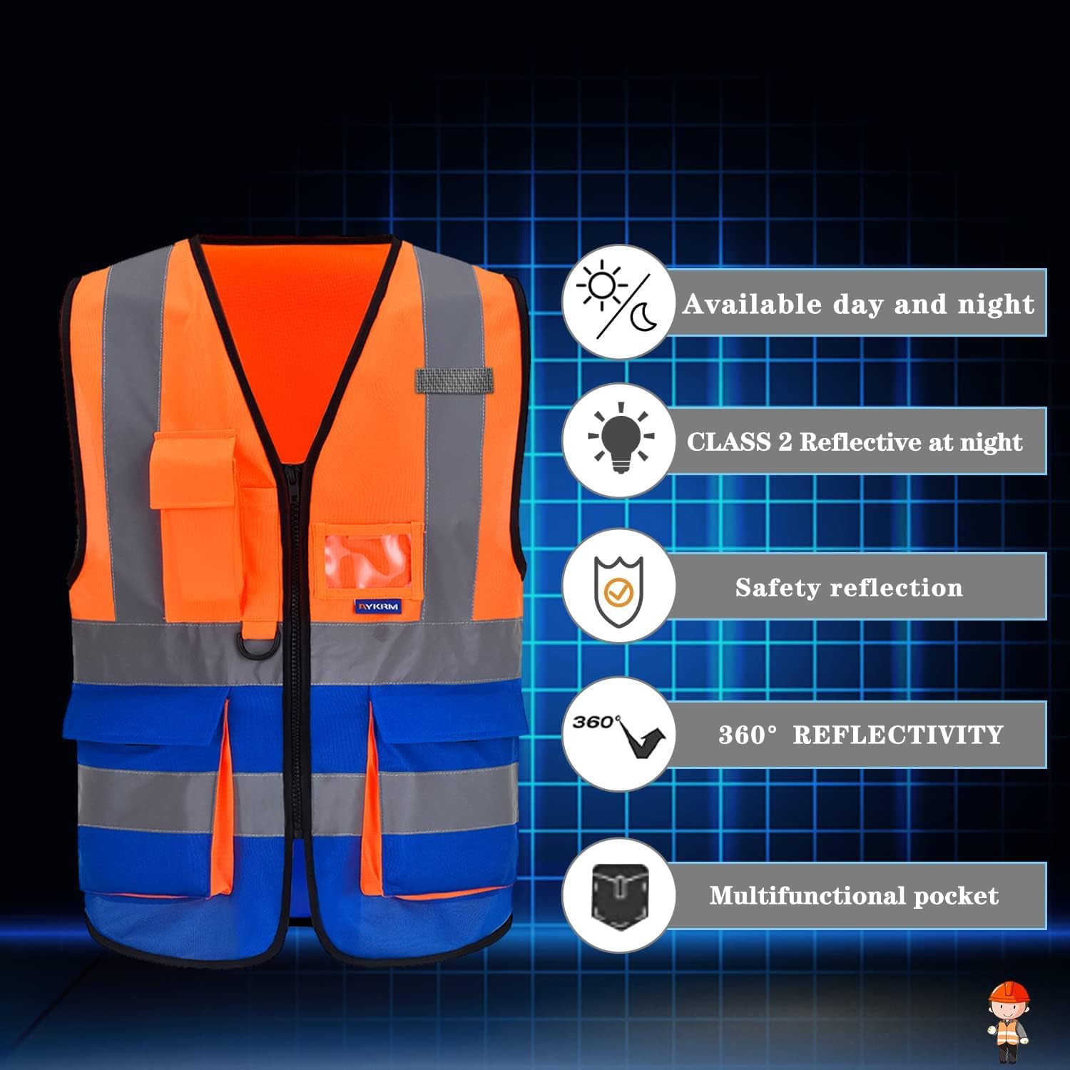 سترة السلامه المهنية اللون الاورانج و الكحلي السترة التي تجمع بين اللونين الاورانج و الكحلي تجمع بين فوائد كلا اللونين: 1. الرؤية العالية: وجود اللون الاورانج (أو الاورانج الفسفوري) يضمن أن مرتديها واضح وظاهر للعيان، مما يزيد من سلامته. 2. التعريف بالوظيفة: وجود اللون و الكحلي (غالبًا على شكل شرائط أو أقسام) يساعد في تحديد هوية مرتديها أو دوره. على سبيل المثال: o قد تكون سترة مشرف موقع بناء: حيث يعزز الاورانج من كونه مشرفًا، بينما يضمن و الكحلي سلامته بين المعدات والعمال. o سترة عامل في المطار: حيث يحتاج إلى أن يكون مرئيًا (الاورانج) ولكن لونه الرسمي أو تعريف فريقه هو الاورانج. o سترة شرطي مرور أو أمن: للحصول على رؤية عالية مع الاحتفاظ بالهوية المؤسسية المواصفات القياسية المهمة بغض النظر عن اللون، يجب أن تفي السترات بمعايير السلامة لضمان فعاليتها. • المواد العاكسة (Reflective Tape): يجب أن تحتوي على شرائط عاكسة (غالبًا فضية أو بيضاء) تعكس ضوء المصابيح الأمامية للسيارات في الليل