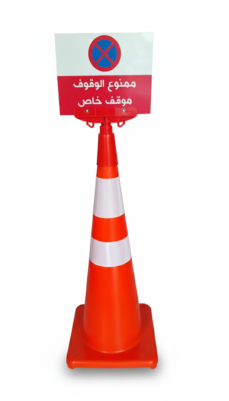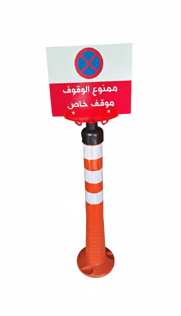 This product is a movable "No Parking" sign, an ideal tool for traffic management and marking designated parking areas. Here is a draft professional description you can use for this product, focusing on its features and benefits: 🛑 Movable "No Parking" Sign (Private Parking) - Maximum Visibility and Security Product Description The "No Parking" (Private Parking) sign is the perfect solution to secure and protect your private spaces from unauthorized parking. This product combines the high visibility of the international "No Parking" sign (a red circle with two blue crossed lines inside) with the clear Arabic text "No Parking - Private Parking" to ensure no confusion. The sign comes mounted on a sturdy traffic pole (or cone), featuring a bright orange color and reflective (white) strips, making it clearly visible at all times, day and night. ✨ Key Features Superior Visibility: Internationally recognized "No Parking" sign design + clear Arabic text. Nighttime Visibility: Equipped with reflective strips on the pole to ensure maximum visibility in the dark. High Durability: Made of high-quality, weather-resistant plastic (sun, rain, wind). Easy to transport and store: Lightweight design and stable base make it easy to move and place wherever needed. Flexible installation: The base can be permanently fixed with screws (depending on the post type) or used as a temporary, portable barrier. Ideal uses: Protecting private or guest parking spaces. Defining loading and unloading areas. Organizing entrances, exits, and passageways. Ideal for shops, clinics, and residential buildings that need to protect their private space.