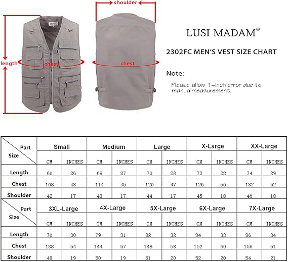 سترة رجالية من القماش البوبلين للخارج والسفر والرياضة مع جيوب متعددة للعمل وصيد السمك العديد من الجيوب، 16 جيبًا مريحًا لتنظيم مختلف الأدوات والأغراض الصغيرة التي يمكن حملها، عملي جدًا. مصنوع من 35% قطن و65% بوليستر، مواد عالية الجودة، خفيف الوزن، قابل للتهوية ومريح. سترة عملية للغاية، رائعة للصيد، الصيد البري، السفاري، السفر، التصوير، التخييم، العمل في الهواء الطلق أو للارتداء اليومي العادي، إلخ. القماش الناعم مثالي لجميع المواسم. التصميم الفريد والمتفكر للجيب يوازن بين المظهر والعملية. الجيوب المتعددة، الجيوب المخفية والجيوب الداخلية بسحاب تجعلها أكثر أمانًا وعملية. معدات رائعة للسفر الآمن، تخطيط الجولات، أو استخدام وسائل النقل العامة. تحقق من مخطط مقاسات LUSI MADAM، القيم الموجودة في المخطط خاصة بالسترة نفسها، وليست بأجسامنا. قس صدرك واختر مقاس السترة الذي يزيد على صدرك بمقدار 4 بوصات على الأقل. يرجى ملاحظة أن السحاب الرئيسي على الجانب الأيسر.