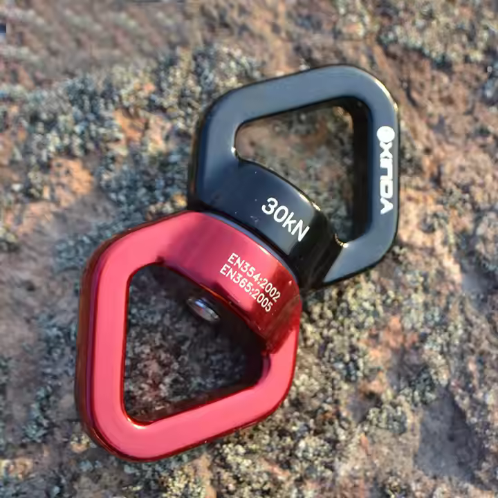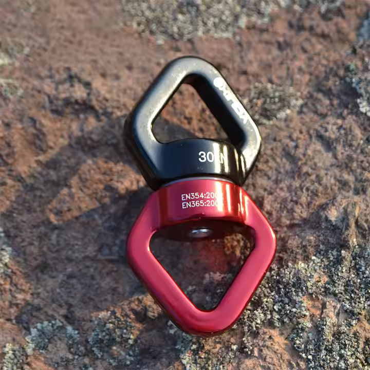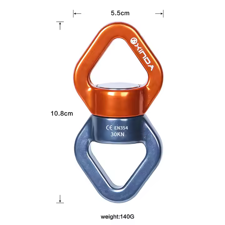XINDA CE certified high quality 30kN aluminum swing swivel for anchoring Brand:XINDA Code :XD-Q9602 Name: Swivel Color: Color as seen Net weight: 140g Size: width5.5cm height10.8cm Strength:30kN(3000KG) Material: 7075 aircraft grade aluminum Application: Orientating and preventing ropes from twisting and tangling etc.